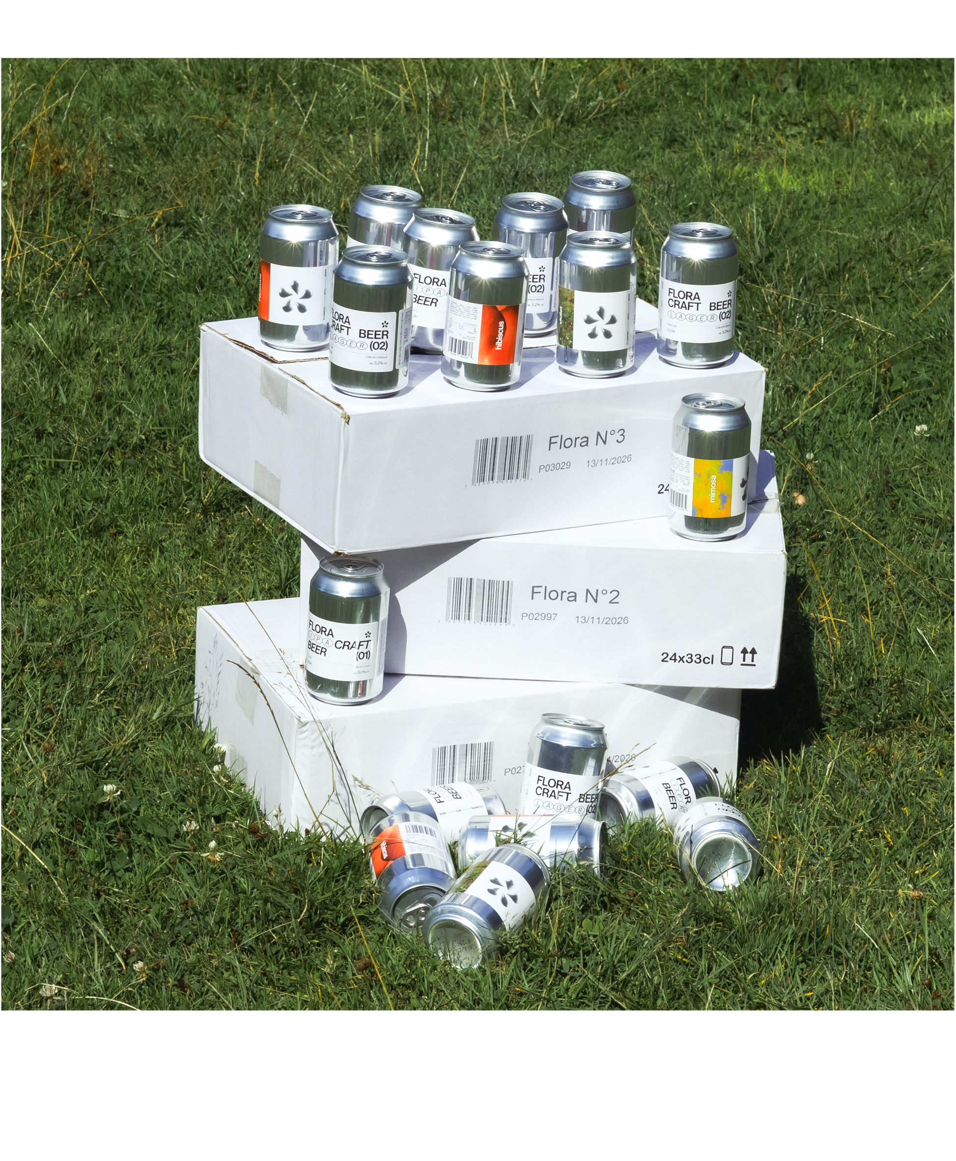 Flora N°1, a Violet Floral IPA (6.0%). Upon opening the can, a violet aroma greets you. On the palate, it delivers the taste of an IPA without excessive bitterness, followed by a gentle, lingering finish thanks to its floral notes. Easy to drink and perfect for a summer beer.